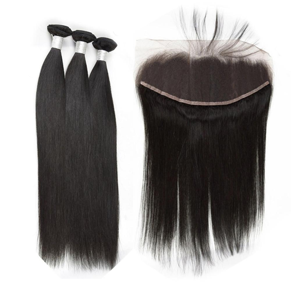 Wolf king straight 3 bundles with 13*4 HD transparent frontal natural color 100% human hair weft