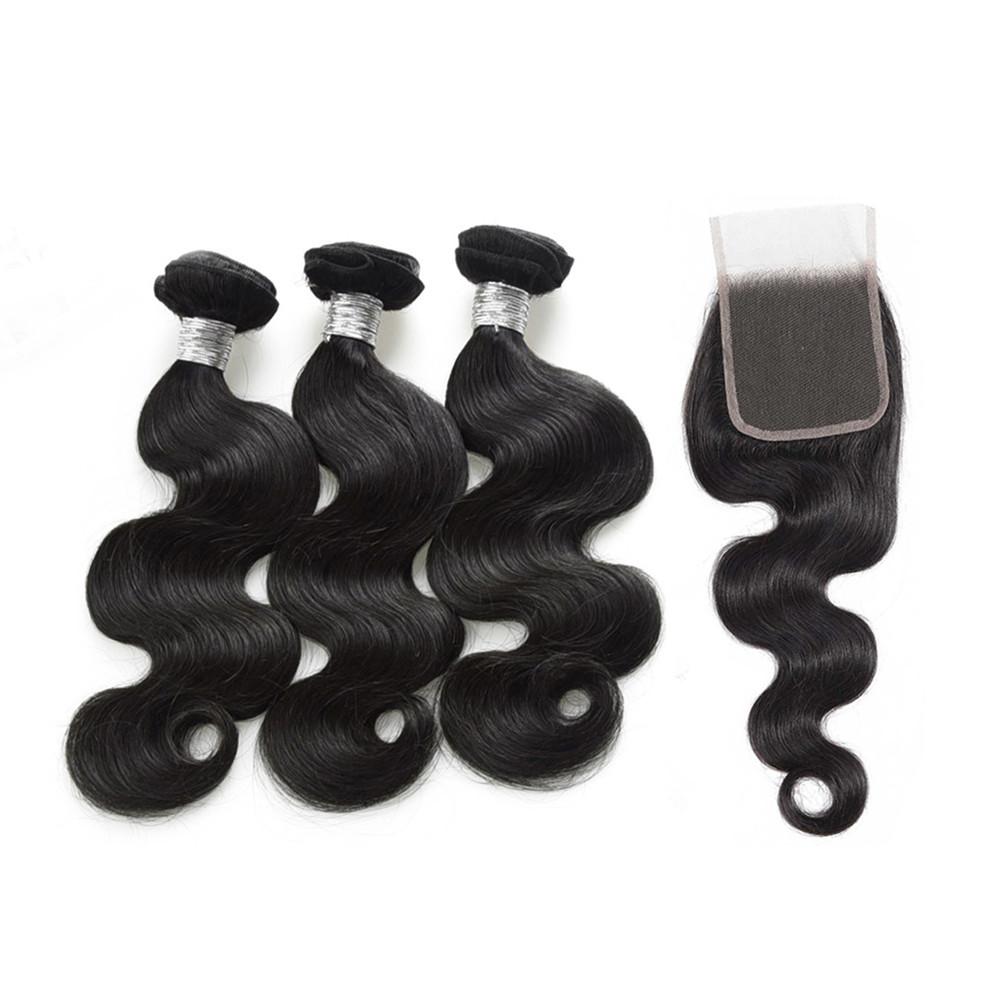 Wolf king body wave 3 bundles with 4*4 HD transparent closure natural color virgin human hair weft