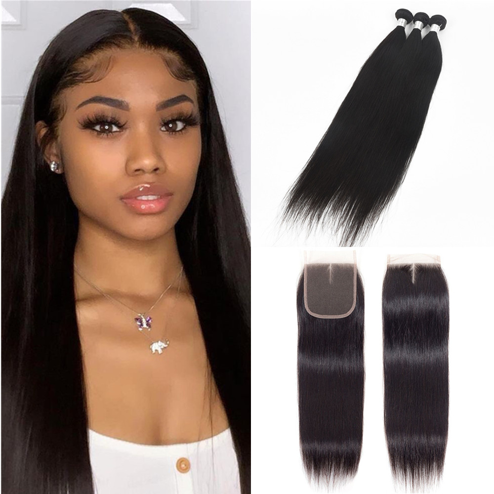 Wolf king straight 3 bundles with 4*4 HD transparent closure natural color virgin human hair weft