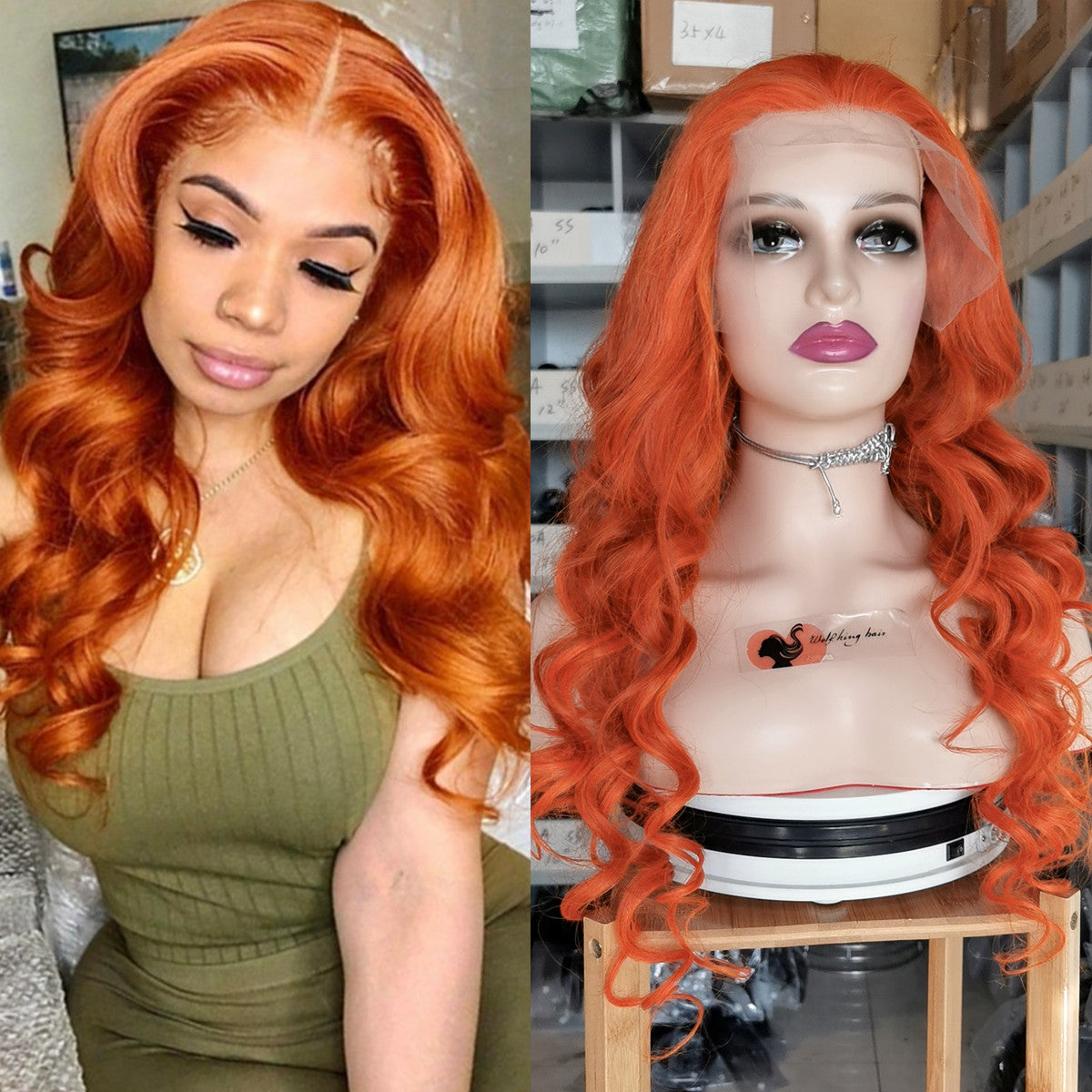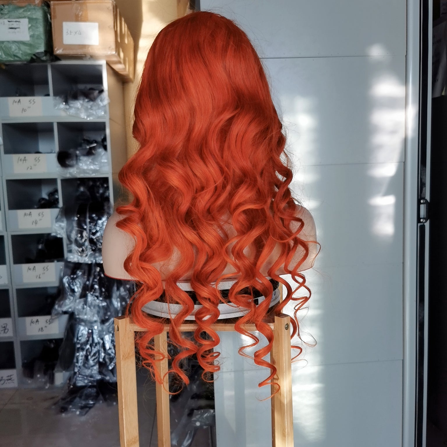 Wolf king orange color loose wave 13*4 transparent frontal lace wig 150% Density