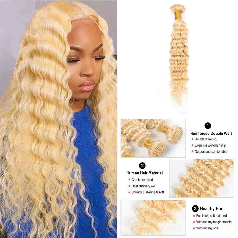 Wolf king 613# deep wave 3 bundles 613# color virgin human hair weft