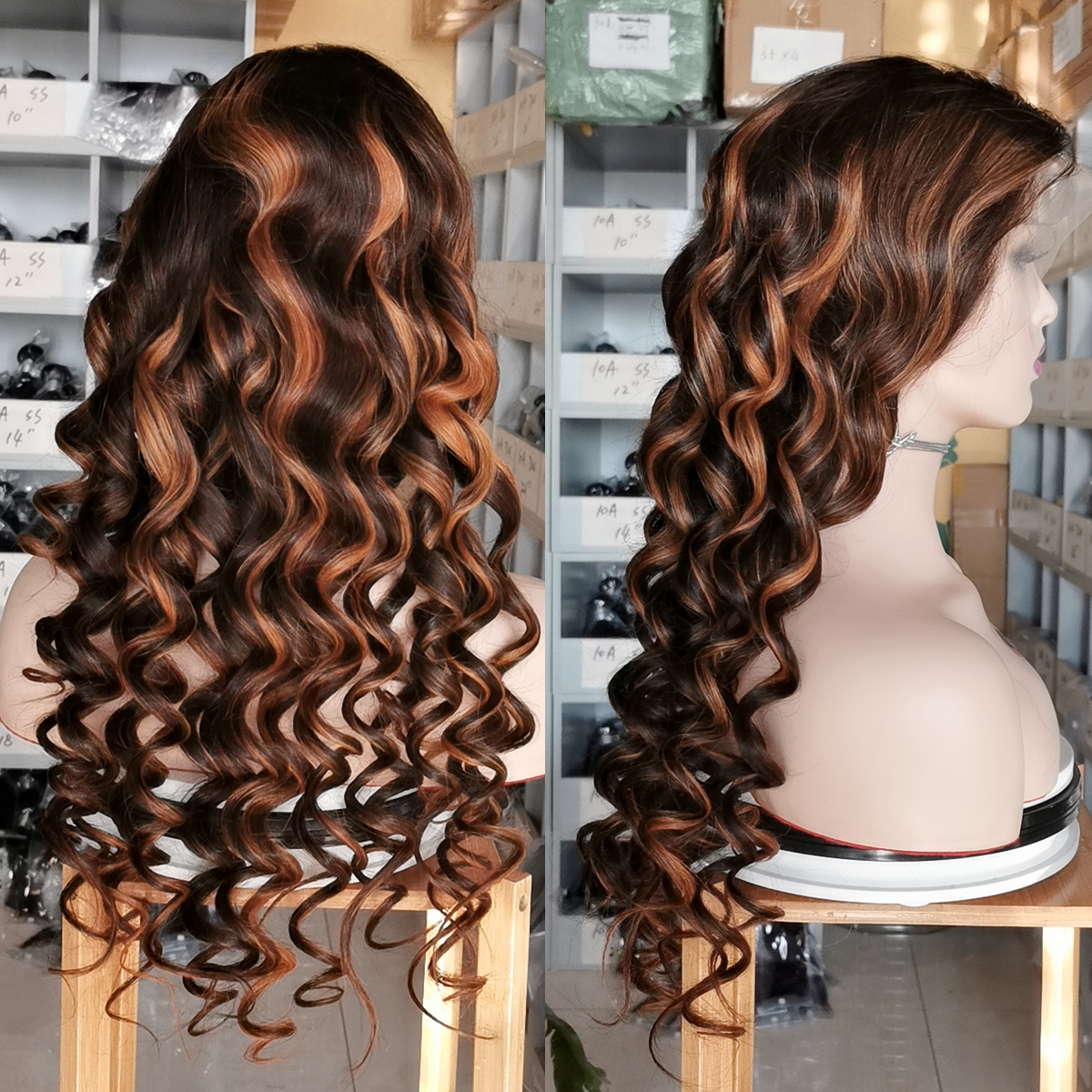 Wolf king highlight color loose wave 13*4 transparent frontal lace wig 150% Density