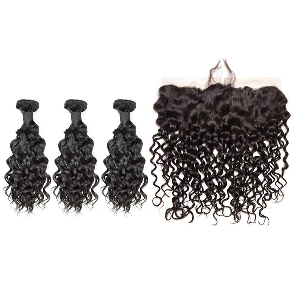 Wolf king water wave 3 bundles with 13*4 HD transparent frontal natural color virgin human hair weft
