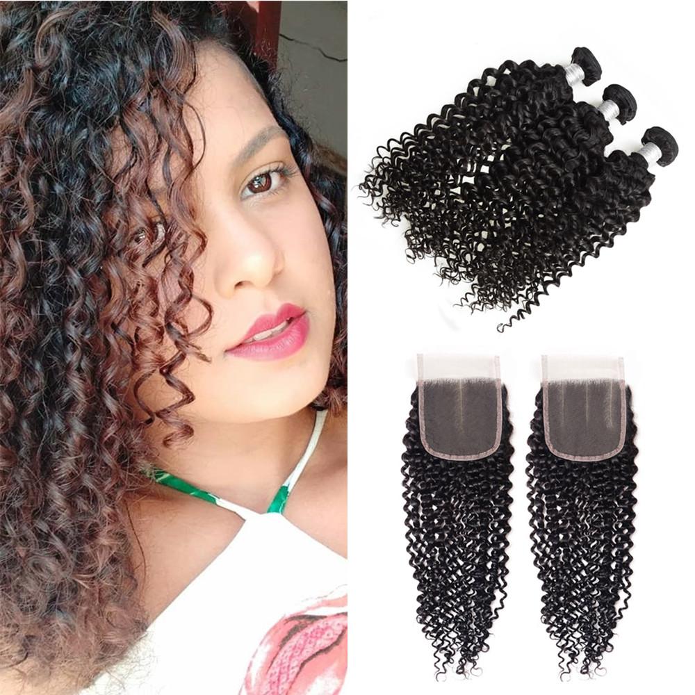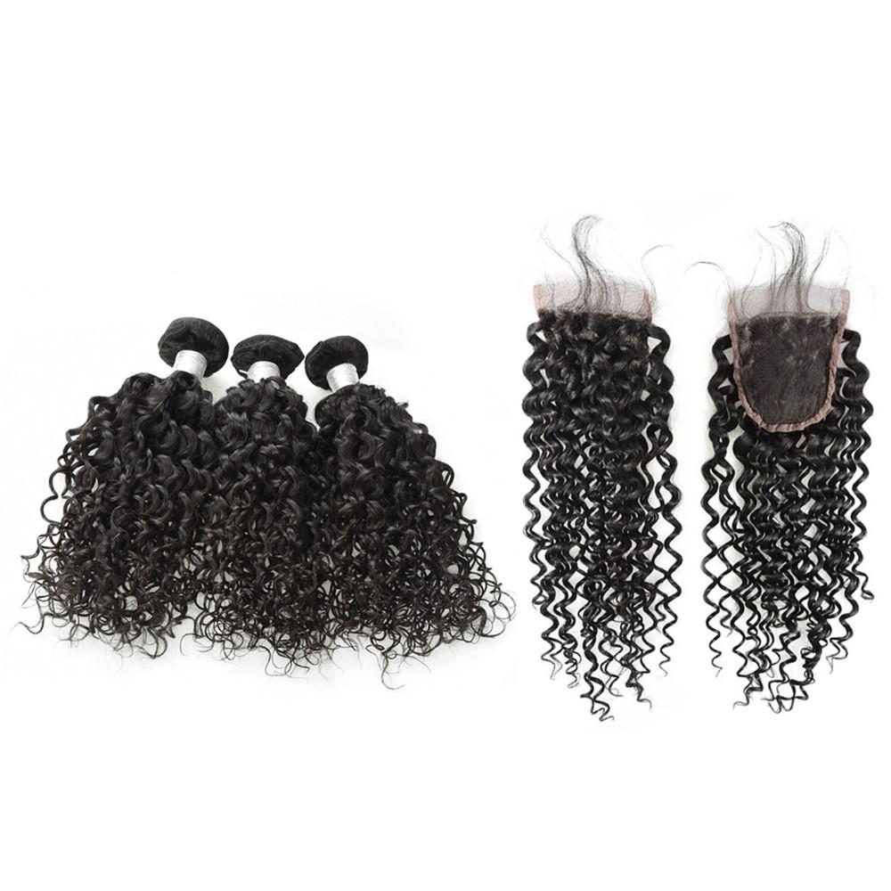 Wolf king curly 4 bundles with 4*4 HD transparent closure natural color 100% human hair