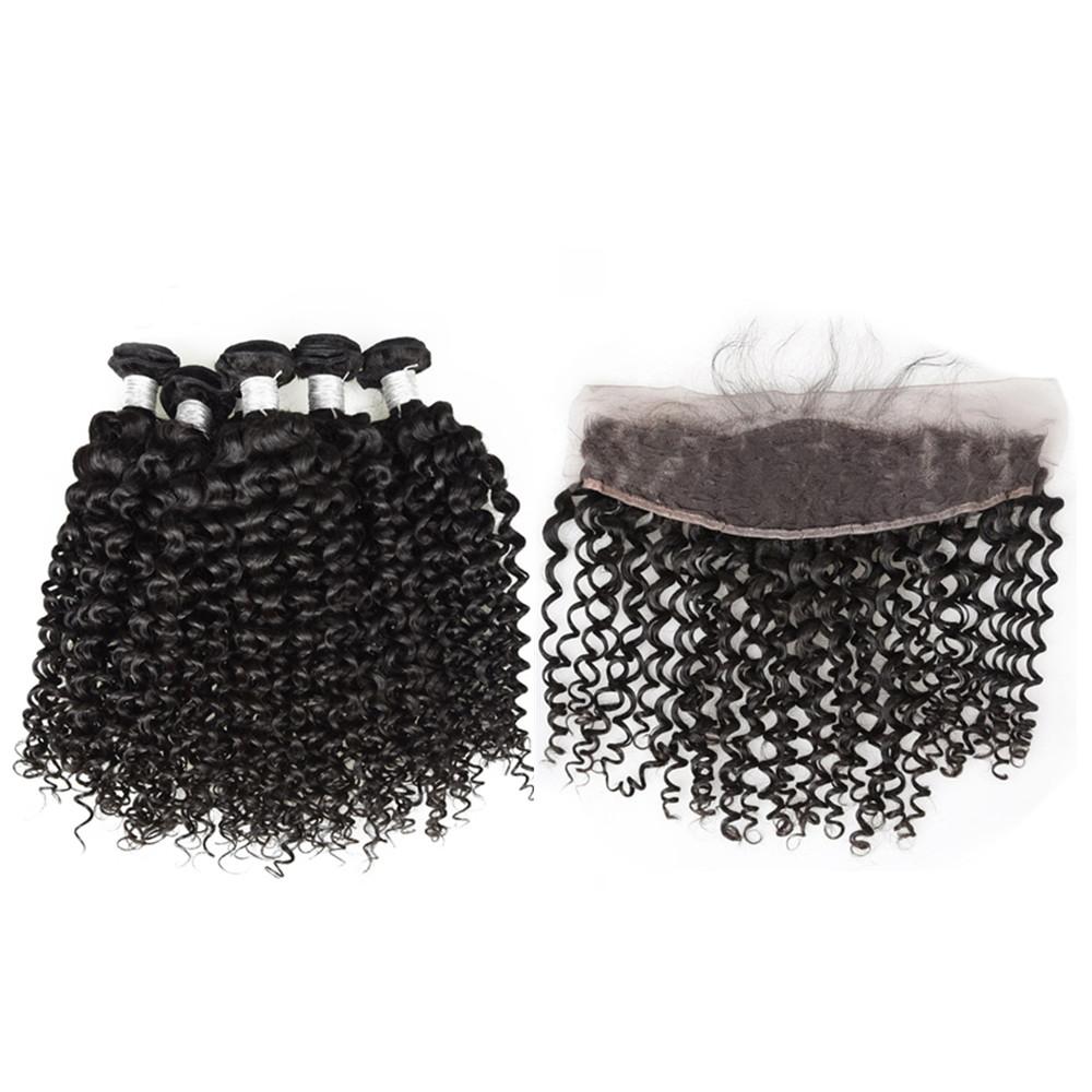 Wolf king curly 4 bundles with 13*4 HD transparent frontal natural color virgin human hair weft