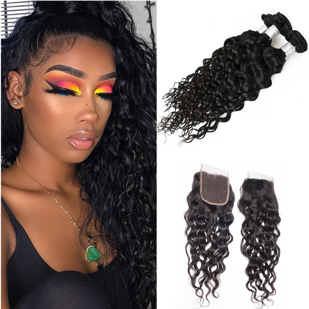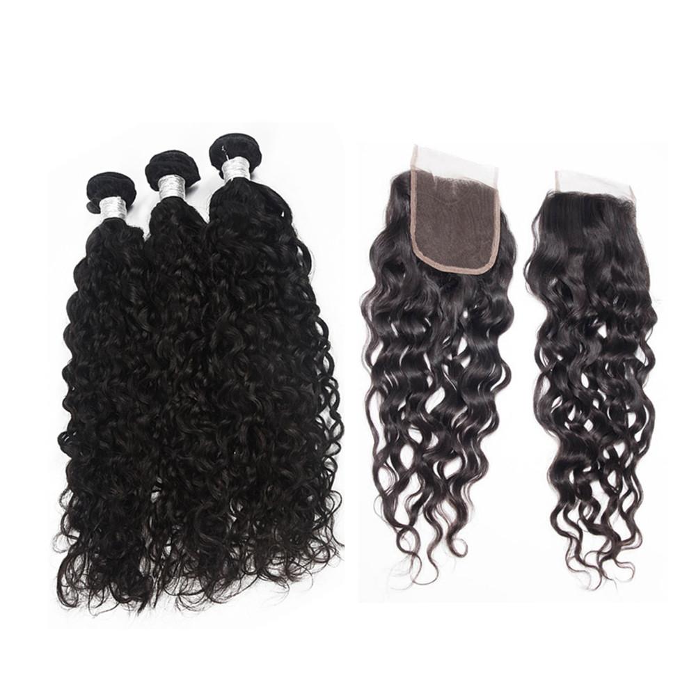 Wolf king natural wave 3 bundles with 4*4 HD transparent closure natural color virgin human hair weft
