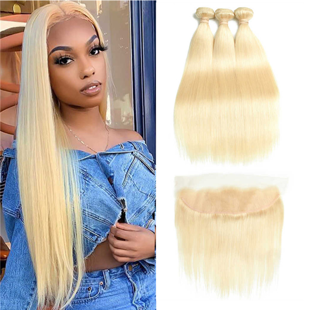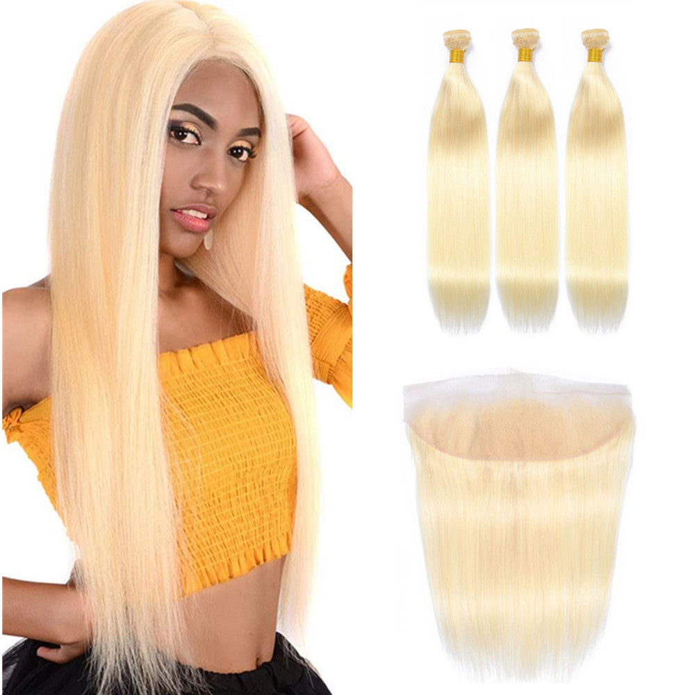 Wolf king 613# straight 3 bundles with 13*4 lace frontal 100% human hair