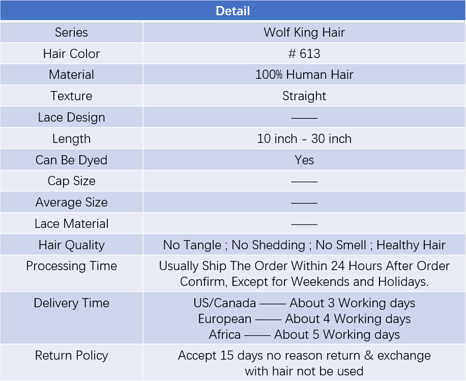 Wolf king 613# straight wave 1 bundle 613# color virgin human hair weft