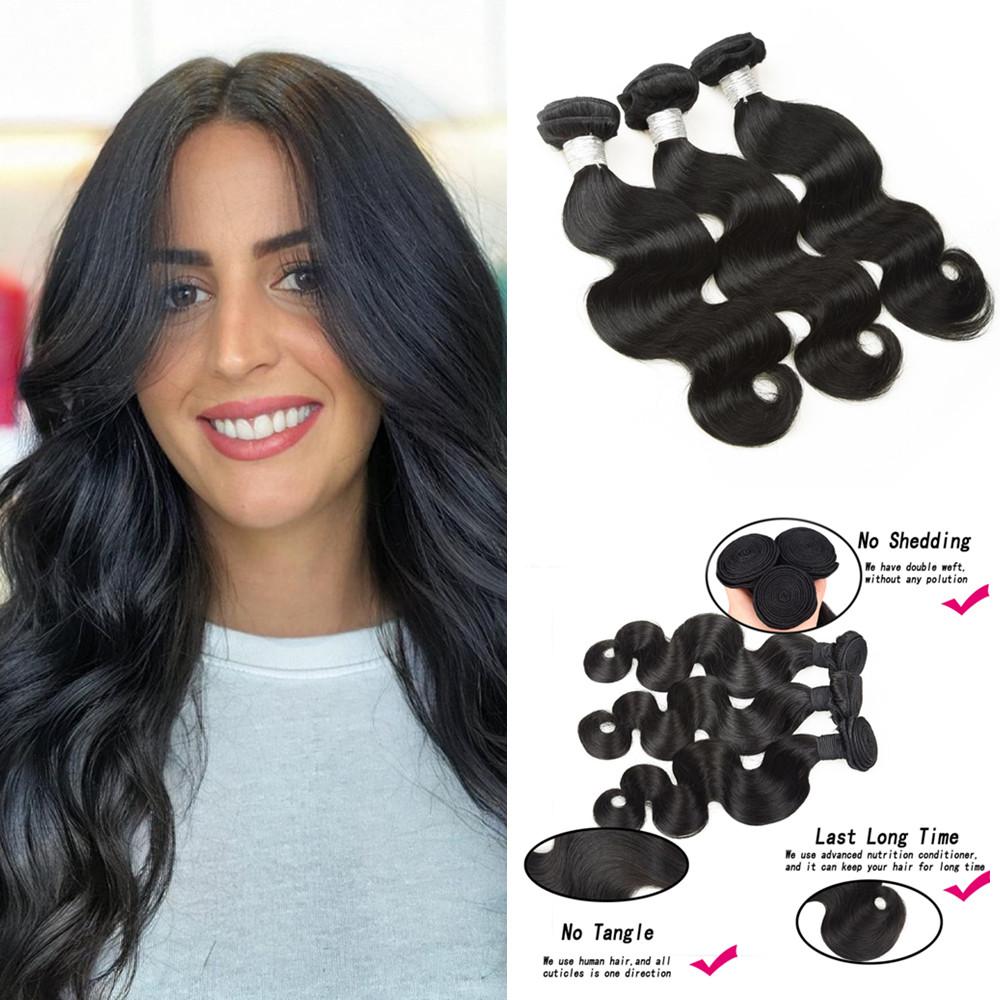 Wolf king body wave 3 bundles natural color virgin human hair weft