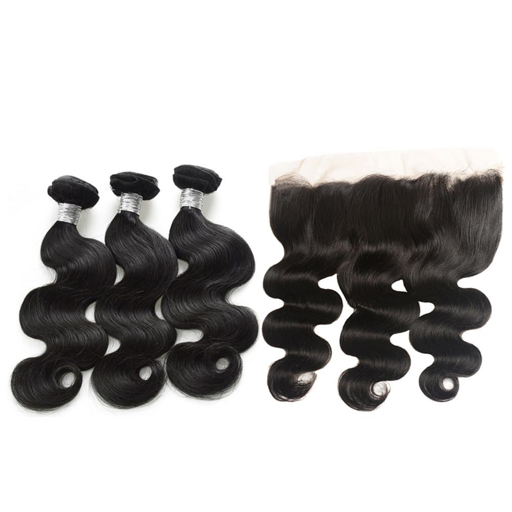 Wolf king body wave 3 bundles with 13*4 HD transparent frontal natural color virgin human hair weft