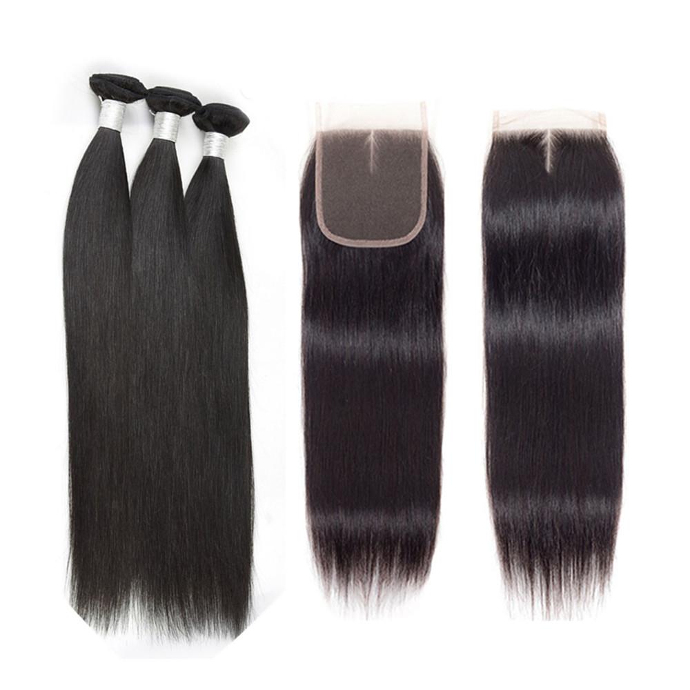 Wolf king straight 3 bundles with 4*4 HD transparent closure natural color virgin human hair weft