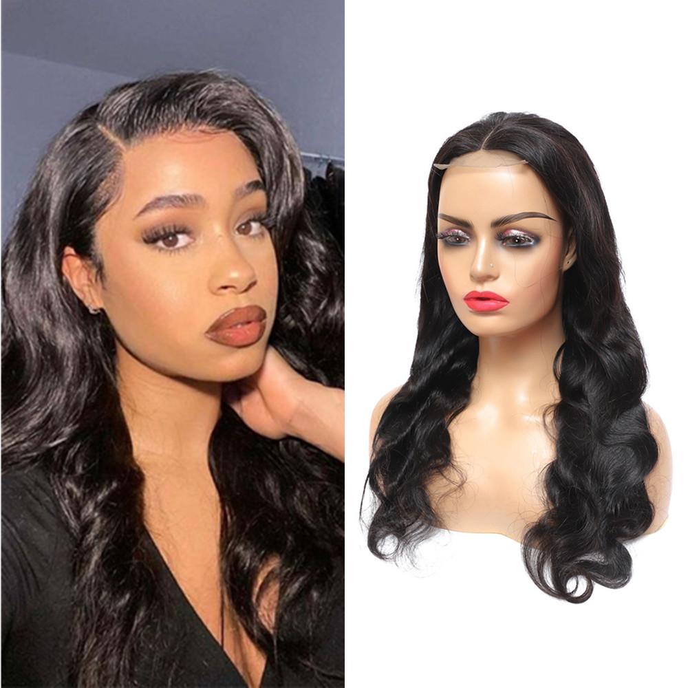 Wolf king body wave 4*4 HD transparent closure wig 100% human hair natural color