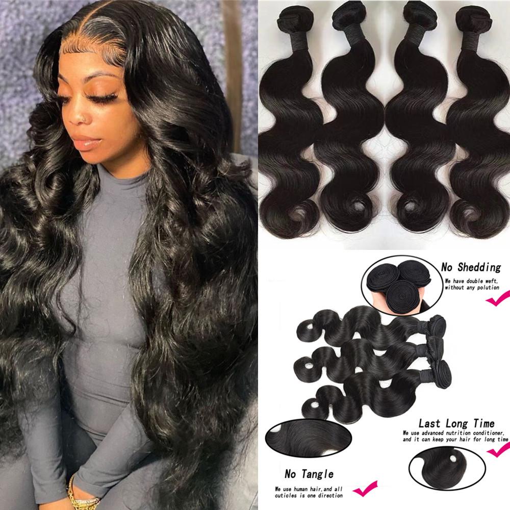 Wolf king body wave 4 bundles natural color virgin human hair weft