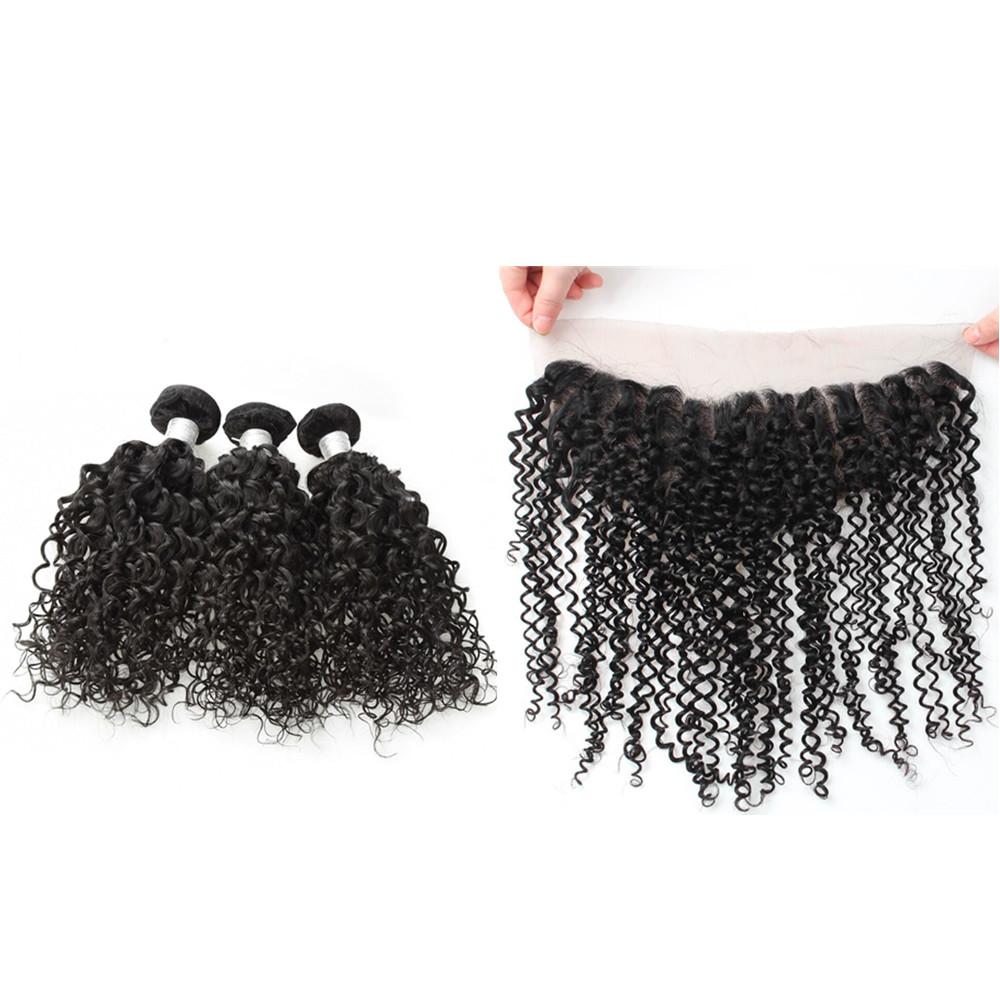 Wolf king curly 3 bundles with 13*6 HD transparent frontal natural color virgin human hair weft