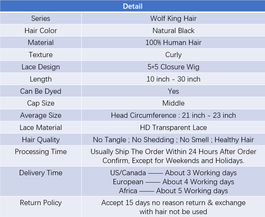 Wolf king curly 5*5 HD transparent closure wig 100% human hair