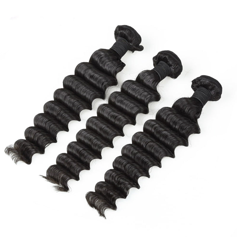 Wolf king deep wave 3 bundles natural color virgin human hair weft