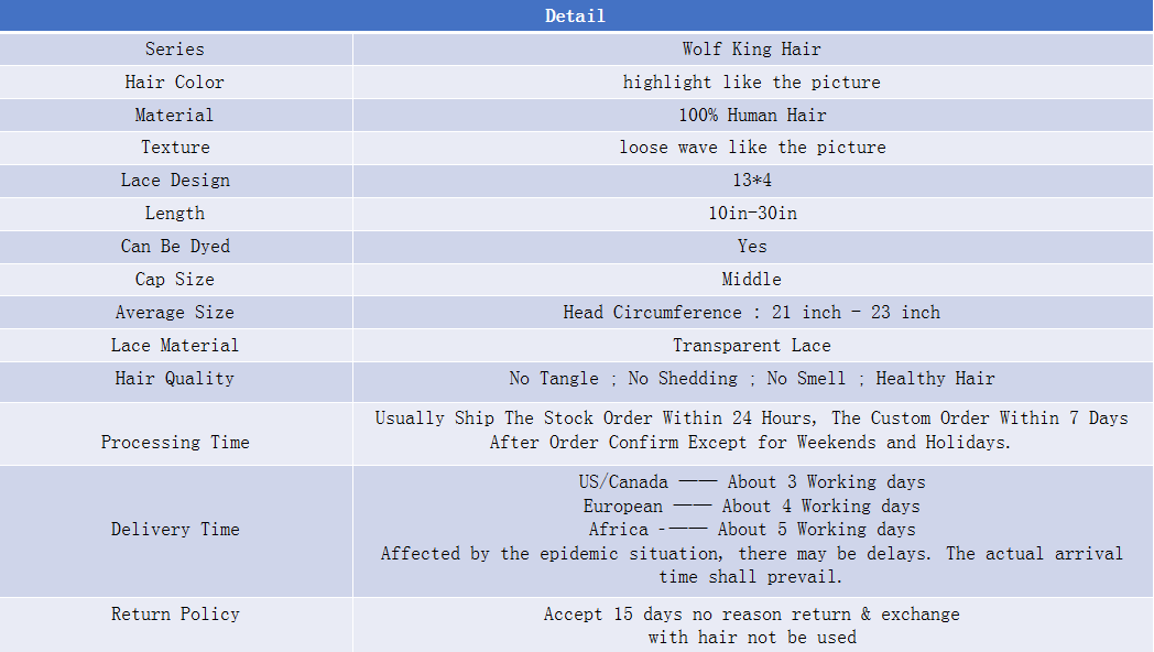 Wolf king highlight color loose wave 13*4 transparent frontal lace wig 150% Density