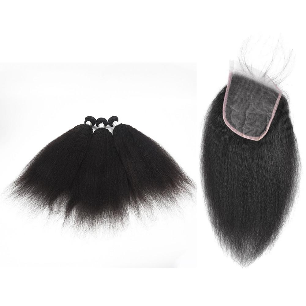Wolf king kinky straight wave 3 bundles with 5*5 HD transparent closure natural color virgin human hair weft