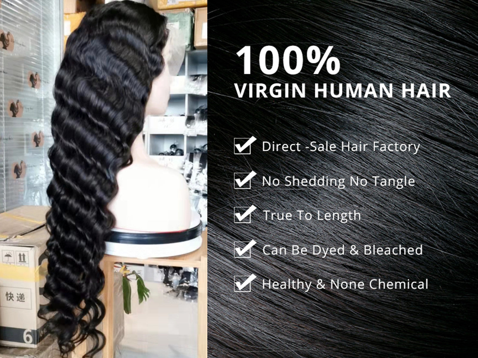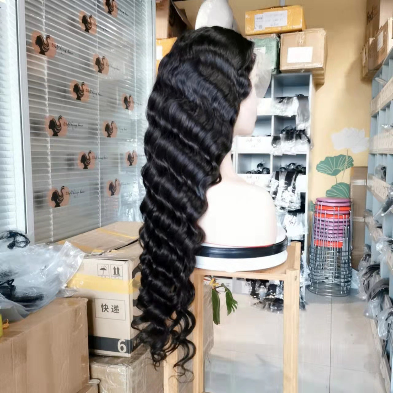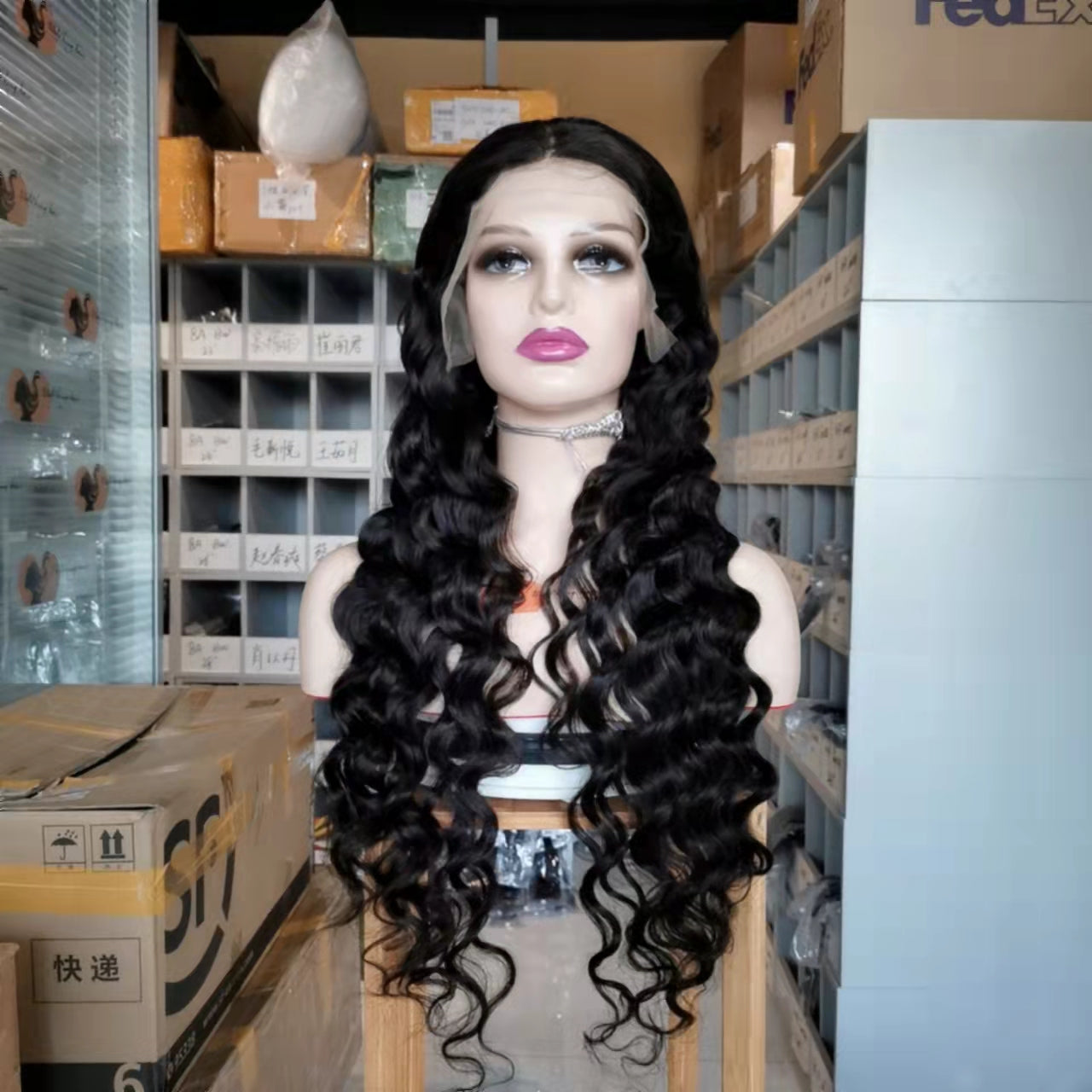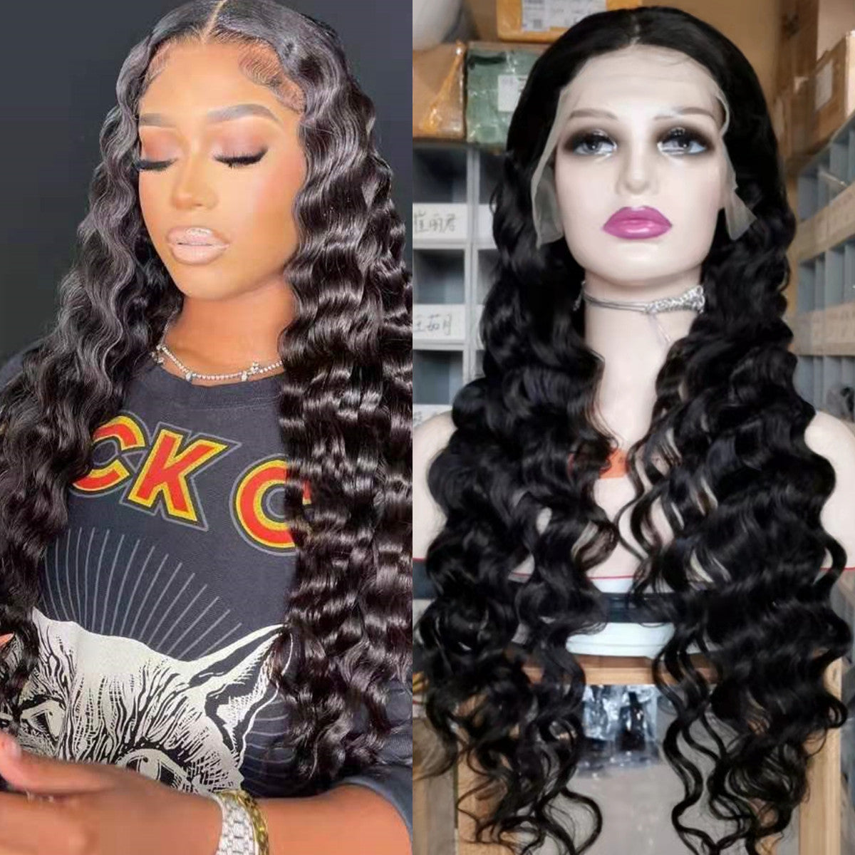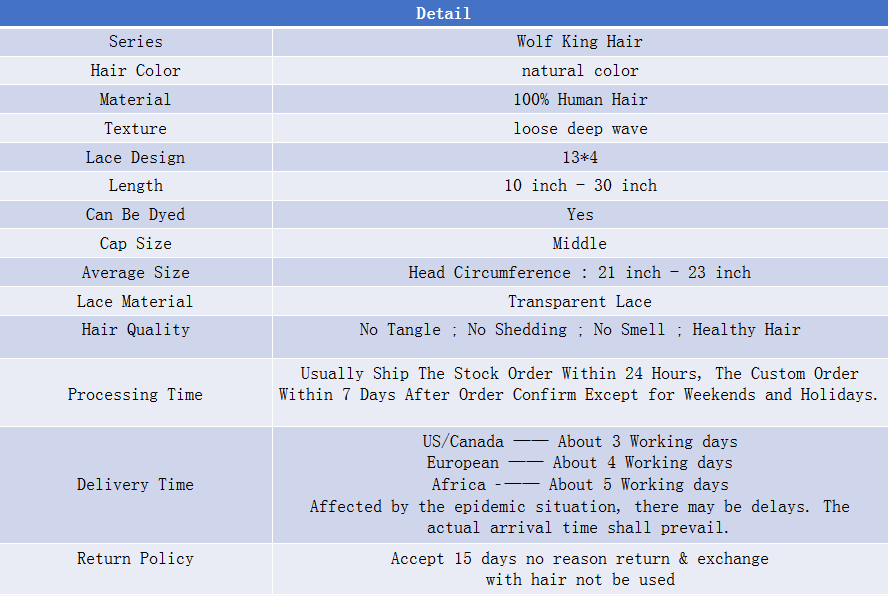 Wolf king natural color loose deep wave 13*4 transparent frontal lace wig 150% Density