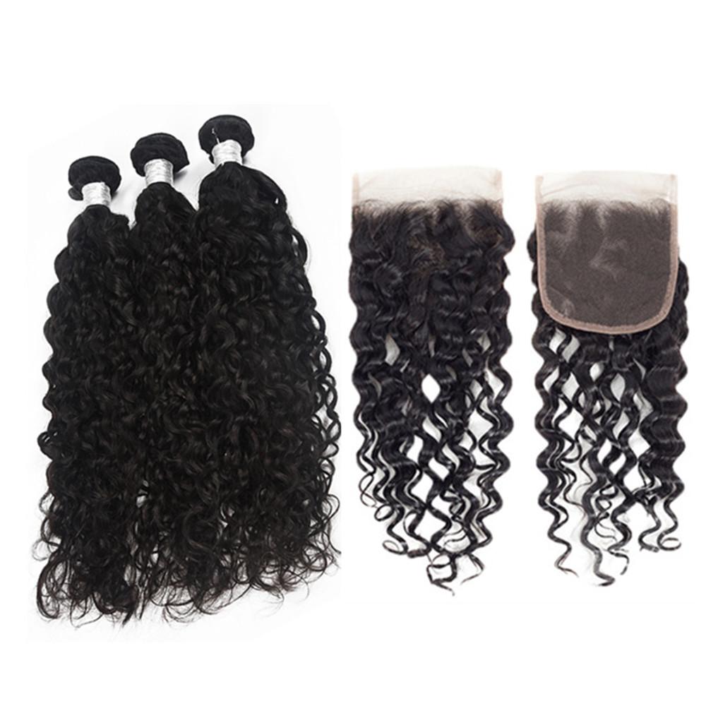 Wolf king natural wave 3 bundles with 5*5 HD transparent closure natural color virgin human hair weft