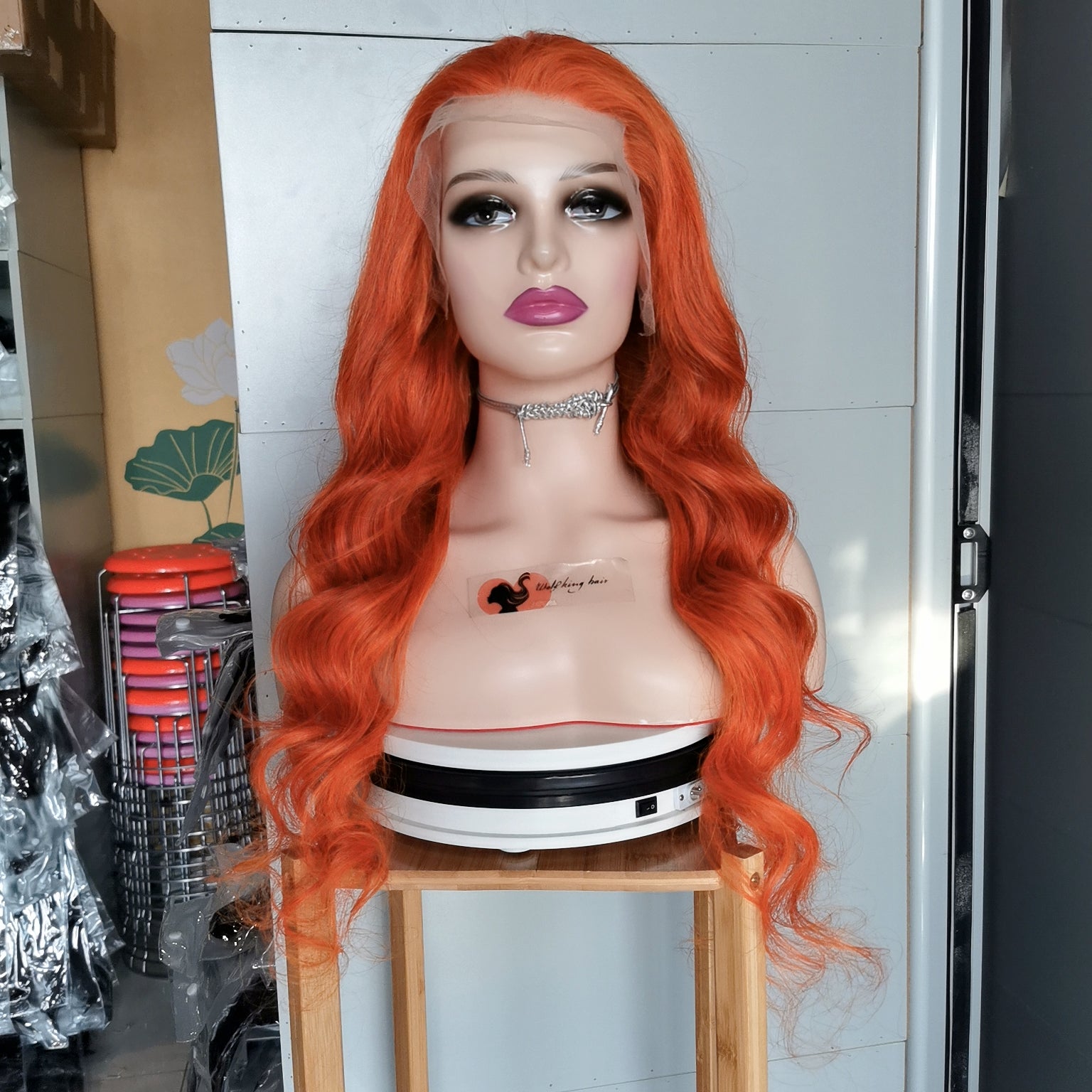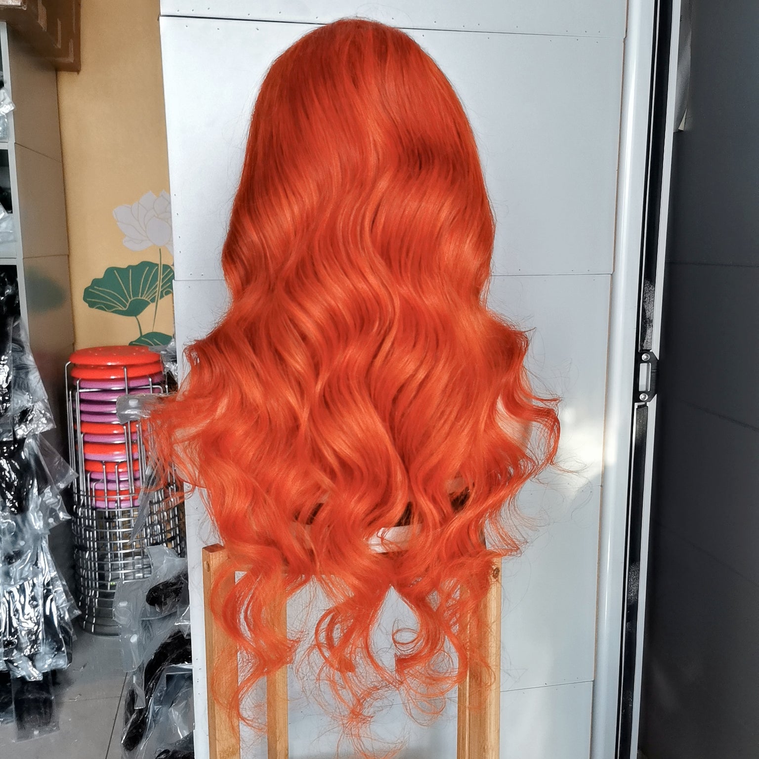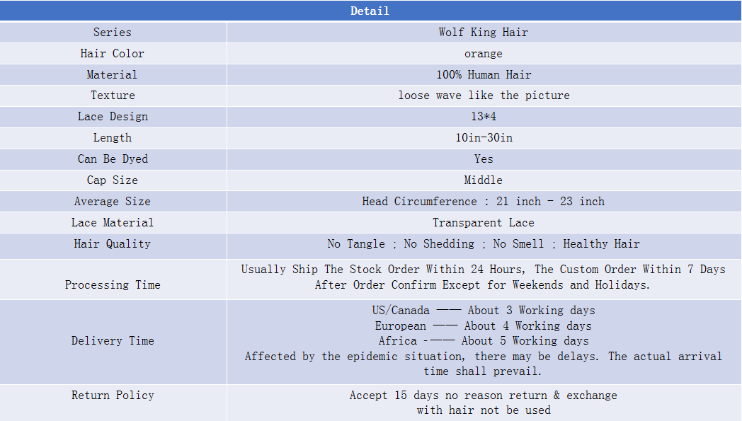 Wolf king orange color loose wave 13*4 transparent frontal lace wig 150% Density