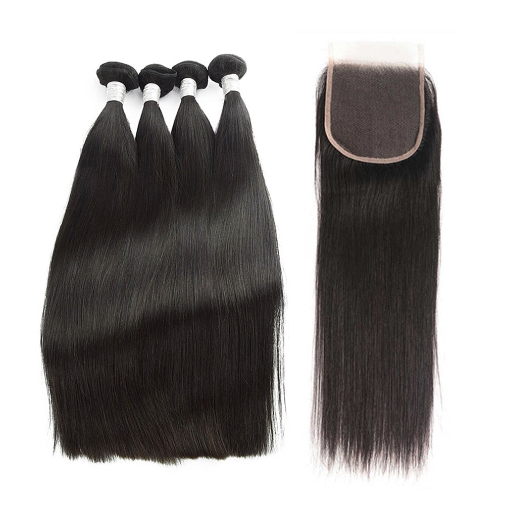 Wolf king straight wave 4 bundles with 4*4 HD transparent closure natural color 100% human hair