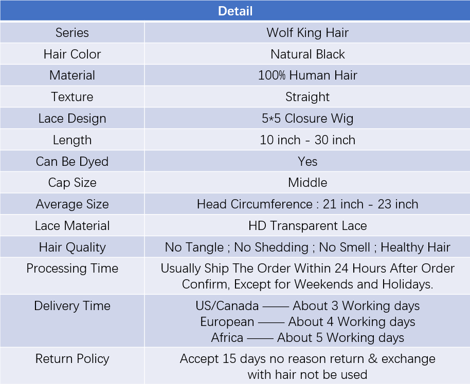 Wolf king straight wave 5*5 HD transparent closure wig 100% human hair