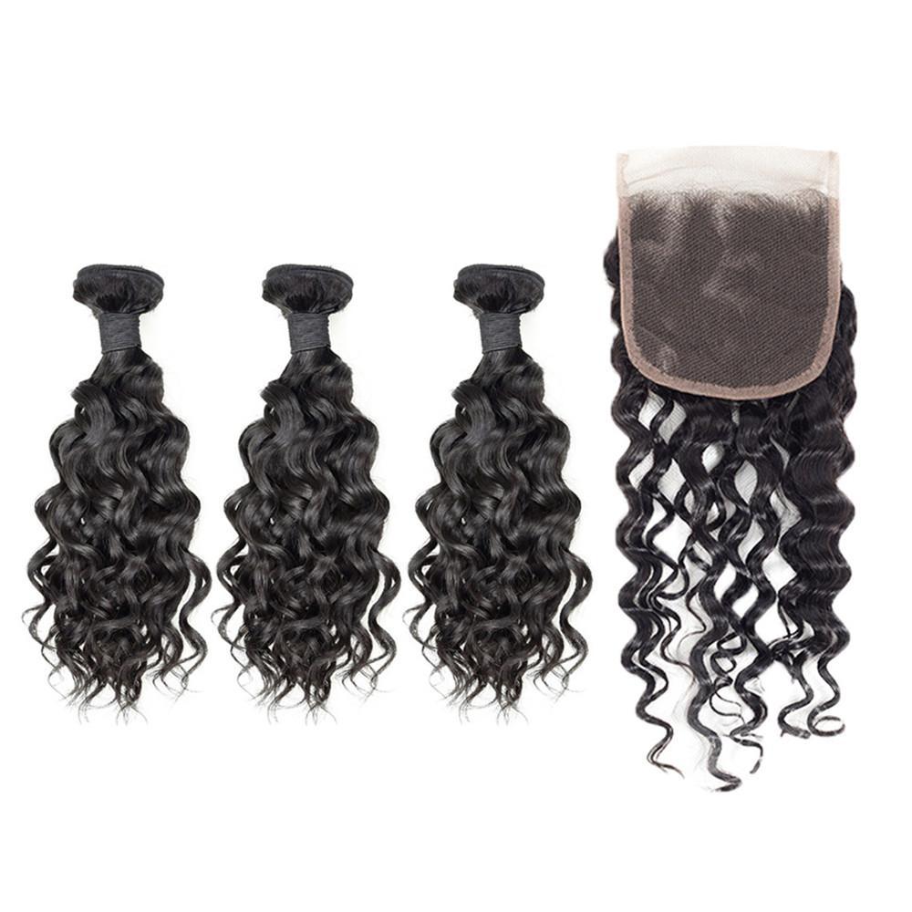 Wolf king water wave 3 bundles with 5*5 HD transparent closure natural color virgin human hair weft