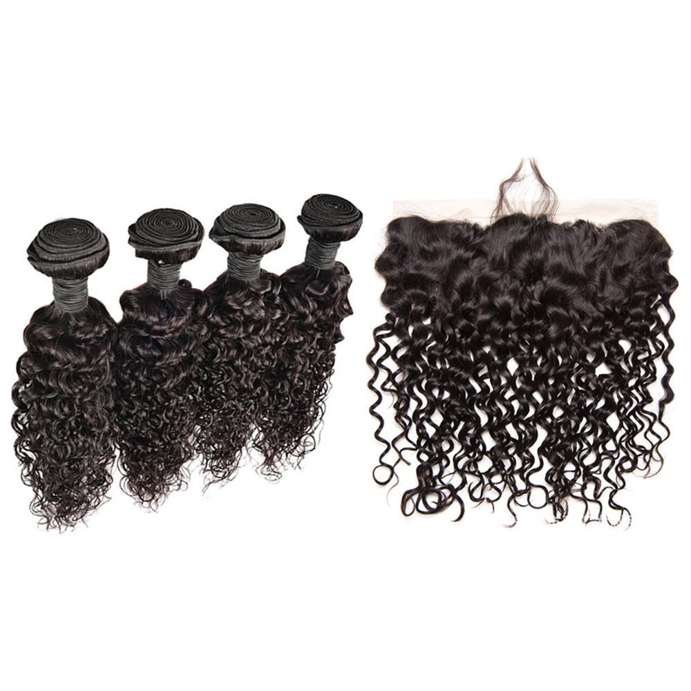 Wolf king water wave 4 bundles with 13*6 HD transparent frontal natural color virgin human hair weft